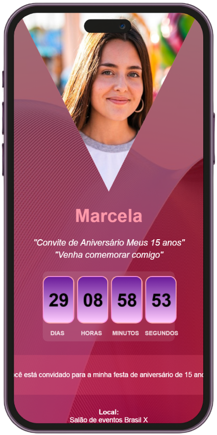 Se encaixa perfeitamente em qualquer tamanho de tela. Você não precisa de um computador ou notebook para gerar o seu convite. Basta um smartphone e pronto. Até parece aplicativo, mas não precisa instalar!
